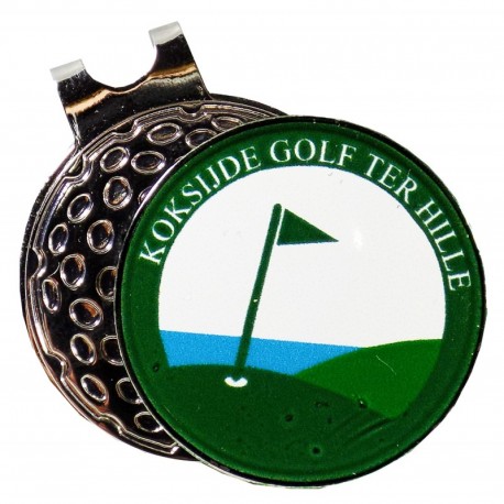 Clip métal avec un marque balle métal amovible. Finition nickelée. Personnalisation quadri sur marque-balle. Quantité minimum pour personnalisation : 25 pièces.
